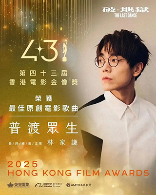 作品的藝術價值,早已被業界諸多獎項印證。《普渡眾生》自二零二四年十月發行以來,斬獲多項重磅榮譽:二零二五年四月摘得第四十三屆香港電影金像獎「最佳原創電影歌曲」,同年還將Chill Club推介榜年度推介歌曲大獎、首屆新加坡國際華語電影金獅大賞最佳原創電影歌曲獎收入囊中,同時入圍叱吒樂壇流行榜頒獎典禮「我最喜愛的歌曲」五強、浪潮音樂大賞「年度歌曲」等提名。這些榮譽的背後,是歌曲與電影的深度融合,也來自它獨立於電影以外、直抵人心的力量。
