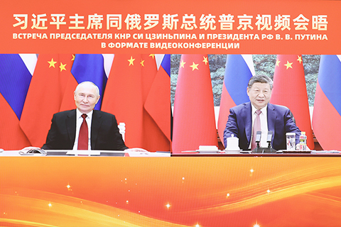 中俄雙方捍衛國際公平正義的堅定決心 習近平同俄羅斯總統普京舉行視頻會晤