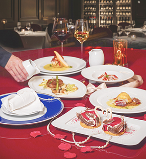 「Romantic Bloom情人節雙人套餐」澳門幣一千五百二十元(兩位用,每道菜各配一杯葡萄酒)或澳門幣一千三百一十四元(兩位用,不配酒),每加一人每位需澳門幣六百二十八元(配酒)或澳門幣五百二十元(不配酒)。訂座致電(八五三)二八五五二二二二內線一百四十二。◇