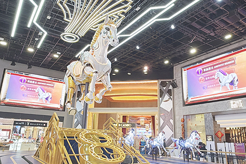 「駿步跑馬場」設於一樓時代廣場,場內機械主馬高達五米,氣勢恢宏。濠友薈會員憑指定消費即可騎乘機械駿馬,親身體驗策馬奔騰、一馬當先的動感瞬間,寓意新年事業騰飛、旗開得勝。
