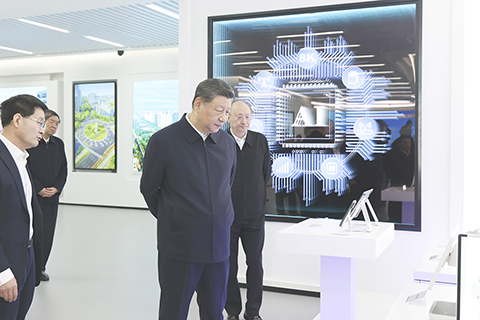 ◎ 二月九日上午,中共中央總書記、國家主席、中央軍委主席習近平來到位於北京亦莊的國家信創園,了解信息技術應用創新和北京加快建設國際科技創新中心情況,察看代表性科技創新成果展示,並同科研人員和科技企業負責人代表親切交流。(中新社記者盛佳鵬 攝)