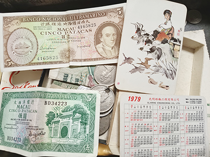 小時候有個朱古力鐵盒,放上小學到中學貴重的紀念紙章、年曆卡、特色錢幣,而用牛奶糖包裝紙寫上數學乗數公式與上廣州車票等等,一直放到現在。