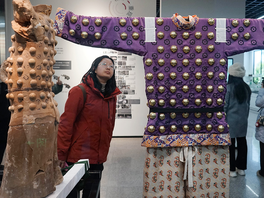 秦始皇帝陵博物院舉行「文物科技保護成果展」:百戲俑等珍品亮相 2026-02-13 03:30:00 ◎ 二月十二日,陝西西安,「凝眸:凝望・望遠・遠眸──文物科技保護成果展」在秦始皇帝陵博物院舉辦。多組珍貴文物亮相展陳,這些文物既是秦代文明的珍貴遺存,更是文物保護工作的鮮活樣本,讓觀眾直觀感受文物保護的實際過程與技術應用。圖為民眾參觀四號百戲俑身上的服裝。(中新社記者 黨田野 攝)