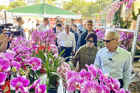 岑浩輝伉儷昨日下午二時半,在行政法務司司長黃少澤、市政署市政管理委員會主席周偉迎、市政署市政諮詢委員會主席許樂敏等陪同下,參觀多個年宵攤檔,了解營運情況及貨品銷情,亦選購到多樣心儀物品,收穫滿滿。尤其學生攤主落落大方地熱情推銷,得到特首讚賞,認為經商之道貴在大膽創新,並需重視宣傳與品牌塑造。他勉勵年輕人秉持進取精神,不斷勇於嘗試,為澳門的未來貢獻力量。