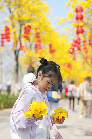 凌空飛馳的天馬 觀賞越冬的紅嘴鷗 日月山下藏鄉年味濃 毛孩過年花樣多 鄉村舞龍隊檔期滿 馬年春節為何姍姍來遲? 廣州黃花風鈴木盛開 2026-02-21 03:30:00 ◎ 二月二十日,在廣州洲頭咀公園,小女孩收集落在地上的黃花風鈴木。春節期間,廣州市海珠區洲頭咀公園及周邊的黃花風鈴木盛開,吸引了不少市民和遊客前來賞花。(新華社記者 吳魯 攝)