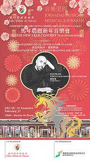 音樂會主題為「馬年農曆新年音樂會:奥兹的船夫-聲影際會」,演出者為Rui Filipe(葡萄牙鋼琴家與作曲家)。