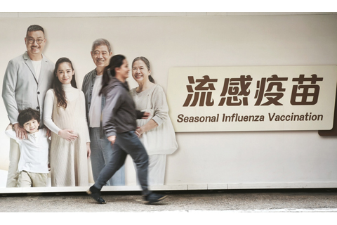 ◎ 香港衛生防護中心日前表示,雖然本地季節性流感活躍程度自上月中起呈持續下降趨勢,但過去一星期,尤其是乙型流感有所回升。中心呼籲尚未接種季節性流感疫苗的人士,除個別有已知禁忌症人士外,應盡快接種疫苗,以保障個人健康及減低相關重症和死亡風險。圖為市民經過呼籲接種疫苗廣告。(香港中通社)