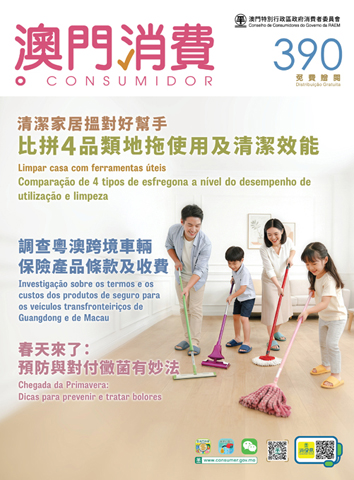 十款地拖的比較測試報告與相關的清潔及保養須知載於新一期《澳門消費》。報告建議消費者選購地拖時可參考是次測試結果,再結合清潔場景及地面材質等實際使用情況作出合適的選擇。