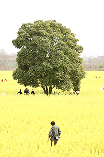 3月3日,四川成都環城綠道千畝油菜花海中一棵大樹吸引遊客打卡。這棵大樹處於花海中央,背景乾淨,畫面通透,網友將其取名為「孤獨的樹」。◇(中新社記者 張浪 攝)