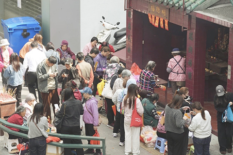 昨日早上,鄰近關閘、青洲、筷子基、新橋等區份的土地廟及石敢當都出現人群,現場已有市民在打小人、亦有人在排隊等候打小人,有人親自動手打,亦有人請人代打。無論是親自打或請人代打,所準備的祭品都會有肥豬肉、白虎、百解、香燭等。由於打小人同時會諗一些口訣,所以有關土地廟、石敢當周邊都「份外熱鬧」。