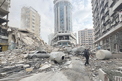 路透社拍攝的畫面顯示,在真主黨根據地──貝魯特南郊,建築物已化為一堆堆冒煙的瓦礫與扭曲的鋼筋。