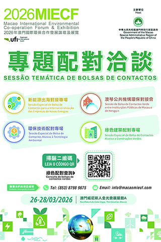 【特訊】為配合「2026年澳門國際環保合作發展論壇及展覽」(下稱「2026MIECF」)「低碳無廢城市 全球協力啟航」之主題,展覽舉行期間將舉辦4個專題配對洽談,為海內外企業與機構提供高效對接平台,促進環保技術、綠色投資與市場合作,助力本澳企業「出海」拓展環保商機。現場更引入科技應用系統提升洽談配對效率,助力企業轉型和拓展綠色商貿新機遇。