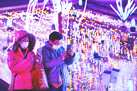 台灣新北市新莊中港大排光雕展閃亮登場,以「星耀中港 夢幻星河」為主題,運用超過三百萬盞炫彩LED燈,營造如夢似幻的夜間光景,點亮中港河廊,讓民眾沉浸在初春的愛、希望和幸福的世界裡,浪漫迎接台灣的白色情人節。(香港中通社圖片)