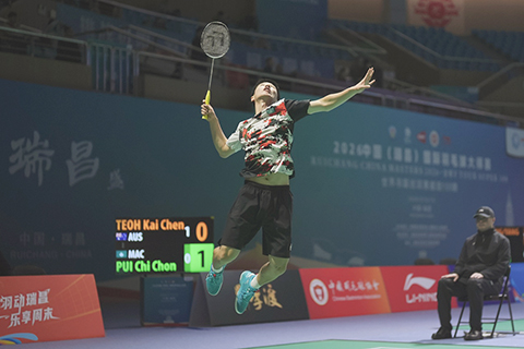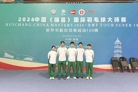 【特訊】2026年中國(瑞昌)羽毛球大師賽超級100賽於3月10日至15日在江西瑞昌順利舉行。本屆賽事作為世界羽聯巡迴賽超級100賽中,吸引了全球23個國家和地區的300餘名運動員同台競技,競爭尤為激烈。中國澳門羽毛球代表隊派出裴鵬鋒、梁鈺聰、吳穎嗣、裴梓臻、裴梓樺共5名運動員,全項出戰男單、女單、男雙、女雙、混雙五個項目,在國際賽場上全力以赴,既展現了運動員的拼搏風采,也通過實戰累積了寶貴經驗: