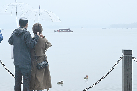 西湖景區綿綿春雨現朦朧美 福州黃花風鈴木公園內賞花 內地多所高校嚴禁AI生成論文核心內容 建設「聰明樓宇」和智慧城市 深圳又走在前面 中國大科學裝置高能同步輻射光源 面向全球啟動首輪課題徵集 台春旱嚴重 多地農業受衝擊 浙江百五十餘萬採茶工 「到崗」採春茶 西湖景區綿綿春雨現朦朧美 2026-03-25 03:30:00 ◎ 三月廿四日,遊人在西湖邊欣賞風景。浙江杭州迎來持續陰雨天氣,西湖景區在綿綿春雨中呈現朦朧美,令人流連。(中新社記者 王剛 攝)