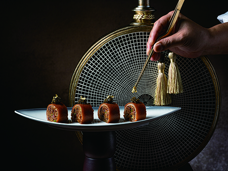 紫逸軒由澳門四季酒店中餐廳行政總廚何鑫濤領銜。廚藝團隊將時令食材融入菜餚,打造出融合傳統與現代的中餐美饌。必試菜式包括金箔魚子醬臘味糯米乳豬卷、北京片皮烤鴨、潤燒石岐玻璃乳鴿等。