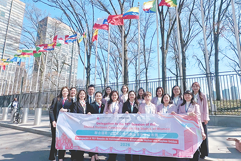 【特訊】聯合國婦女地位委員會第七十屆會議(CSW70)於本月九日至十九日在聯合國總部舉行。澳門婦女聯合總會派出歷屆最龐大的非政府組織代表團參與,成員由婦聯青年協會及國際事務交流培訓協會成員組成,積極響應國家主席習近平在全球婦女峰會重要講話中提出「要支持婦女擔當時代責任,深度參與全球治理」的建議,為澳門女性及青年搭建國際交流平台。期間代表團分別參與國家邊會、籌組兩場平行會議以及藝術市集等,發揮民間外交的積極作用,向世界講好中國故事、澳門婦女發展故事。