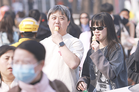 ◎ 三月二十六日,市民在街頭輕裝出行。近日,北京氣溫持續攀升。(中新社記者 賈天勇 攝)