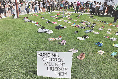 抗議者詹妮特對記者說:「我不喜歡這個國家對待移民的方式。而且,我們也根本不想在中東捲入戰爭。」