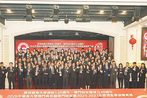 暨南大學校長邢鋒致賀詞指出,暨大建校以來,為全球培養逾五十萬人才,其中澳門校友逾三萬名,是愛國愛澳力量的重要組成部份。充份肯定澳門校友會四十年來的深耕細作,冀新屆理監事會續寫發展新篇。為更高質量服務澳門發展,將啟動暨南大學澳門高等研究院建設,主要承載三大使命:一是依託澳門「一國兩制」優勢,打造海外高端人才進入內地的中轉站;二是推動中醫藥等優勢學科成果轉化落地,助力灣區產業創新升級;三是深化對澳教育合作,定向培養高層次人才。冀各界支持研究院早日落地,為澳門注入新的暨南力量。◇