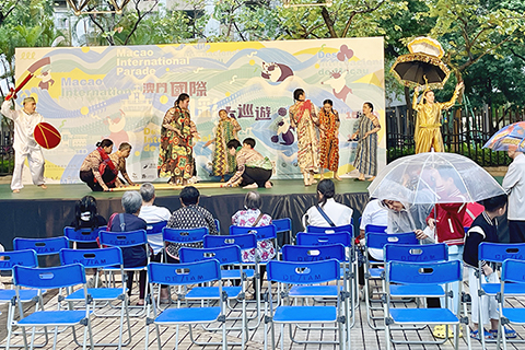 幻彩大巡遊延伸演出 2026-04-05 03:30:00 澳門國際幻彩大巡遊延伸演出昨日下午分別在綠楊花園休憩區和祐漢公園舉行,團體帶來印度及菲律賓歌舞、瑜伽表演等,展現當地傳統文化風采。期間雖然天氣不穩,時有陣雨,但無阻表演者熱情歌舞,街坊亦相當捧場,冒雨撐傘支持,以掌聲和拍照予以最熱烈的回應。◇