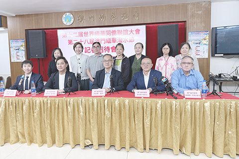 澳門緬華總會昨日上午十一時在會址舉行記者會,介紹「第十二屆世界緬華同僑聯誼大會暨第二十八屆澳門緬華潑水節」系列活動詳情,該會會長洪金樂、理事長曾兆楠、監事長楊榮光、常務副會長蘇慶輝及副會長翁靄楊等出席。