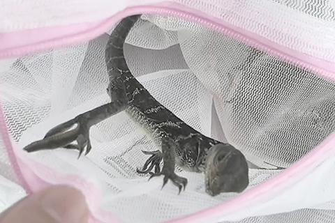 當日,內地旅客陳某經拱北口岸旅檢大廳的海關「綠色通道」進境。現場關員發現其神色異常,遂實施截查。經進一步查驗,關員從其攜帶的透明箱中查獲用衣物收納袋掩藏的五十隻活體蜥蜴。後經拱北海關技術中心鑒定,確認上述活體蜥蜴為帆蜥屬物種。