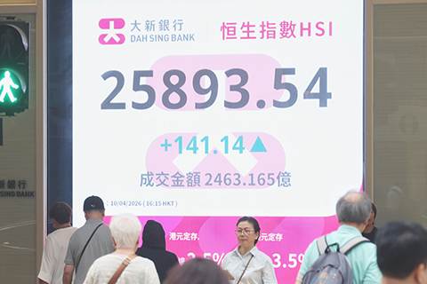 【香港中通社4月10日電】(記者 張明臻)市場憧憬中東局勢緩和,恒指10日收報25893點,升141點或0.55%;大市全日成交2463億港元。全周計,三個交易日累升777點或3.09%。