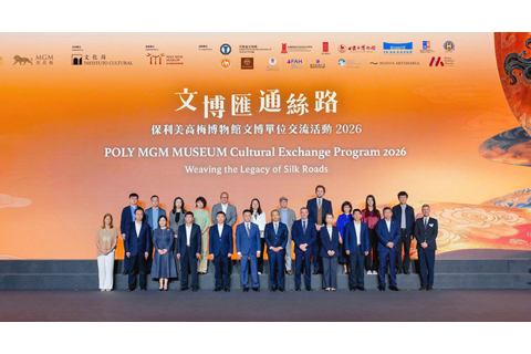 【特訊】美高梅昨日攜手保利文化集團舉辦「文博匯通絲路──保利美高梅博物館文博單位交流活動二0二六」。活動由中國文物交流中心與中國保利集團指導,保利美高梅博物館承辦,現場共有逾五百人參與。來自內地、澳門及海外文博行業專家與知名學者,通過主題論壇、簽署合作備忘錄、新展發佈及《絲路》展覽煥新等形式,圍繞絲路精神的當代詮釋、中西文化的創新表達,及館際合作的長遠發展等議題深入交流。