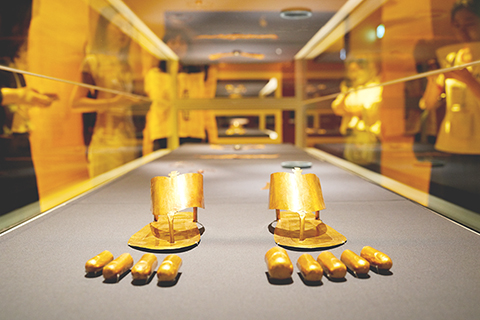 香港「全民國家安全教育日」今日舉行 夏寶龍將以視頻作主旨致辭 琳琅──紐約大都會藝術博物館世界珠寶珍藏 「預測市場」在外圍急速發展對博彩市場帶來不確定性 港府急煞停籃球博彩新項目 港股升二百一十一點 首季兩岸、內地與香港進出口貿易額 同比分別增逾兩成與五成 蟬聯全球最繁忙貨運機場 去年香港國際機場 美前顧問指特朗普難以預料致談判異常艱難 未來局勢失序是新常態 調查顯示受經濟壓力及房屋短缺問題 僅兩成三港人願意生育 企業視香港為走向全球的關鍵樞紐 李家超:逾五百公司排隊來港上市 香港中學文憑試公民科開考 聚焦「一國兩制」、大灣區等 滙豐今年下半年 將在港發行穩定幣 智能柺杖在港創科展亮相 琳琅──紐約大都會藝術博物館世界珠寶珍藏 2026-04-15 03:30:00 ◎ 四月十四日,「琳琅──紐約大都會藝術博物館世界珠寶珍藏」特別展覽在香港故宮文化博物館揭幕。圖為展出的埃及新王國時期的拖鞋和腳趾套。(中新社記者 張祥毅 攝)