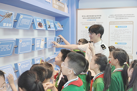 活動現場,圖文展板、案例解析、趣味問答輪番登場。「出國能帶外國特色水果嗎?」「網購境外多肉植物合法嗎?」關員拋出的問題引發學生熱議,大家爭相分享剛學到的知識:「不能帶!可能藏著害蟲!」「要先看海關規定。」
