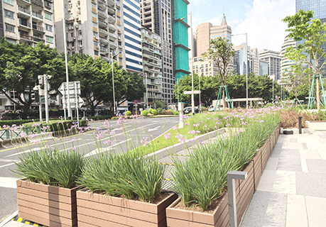 近日在區華利前地巴士站下車,眼前一亮:周邊種植了花花草草,並搭建了一個有上蓋的長凳。