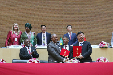 首屆中非企業家高端論壇助力深化中非務實合作 2026-04-23 03:31:00 ◎ 首屆中非企業家高端論壇四月二十一日在位於埃塞俄比亞首都亞的斯亞貝巴的非洲聯盟(非盟)總部舉行。此次論壇以「深化中非務實合作,共啟發展新征程」為主題,共有來自政府、企業、媒體、社會團體等七百餘人出席。圖為當日,在埃塞俄比亞首都亞的斯亞貝巴的非盟總部,嘉賓在首屆中非企業家高端論壇上參加簽約儀式。(新華社記者 劉方強 攝)