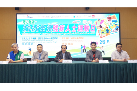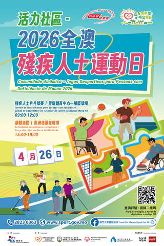 【特訊】由體育局主辦,社會工作局、中國澳門殘疾人奥委會暨傷殘人士文娛暨體育總會、澳門特殊奧運會及澳門聾人體育會協辦的「活力社區─2026全澳殘疾人士運動日」,將於周日(4月26日)舉行。