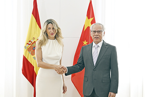 【特訊】行政長官岑浩輝於當地時間二十三日上午,在馬德里拜會西班牙第二副首相兼勞動與社會經濟大臣約蘭達.迪亞斯.佩雷斯(Yolanda Diaz Perez),雙方就推動澳門與西班牙在經貿、旅遊、教育、科技等領域拓展合作關係交流意見。