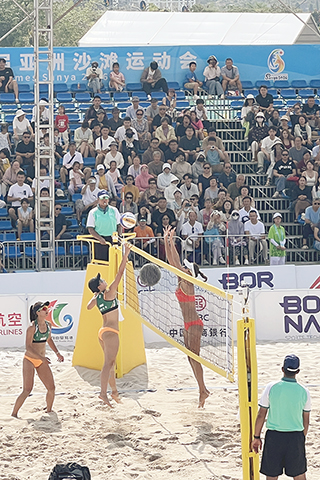 沙灘排球16強淘汰賽成績,女子隊梁安盈/羅詠心組合面對中國國家隊頑強抵抗,連續兩局咬緊11比21比分,最終以局數2比0負中國國家隊,並止步淘汰賽。
