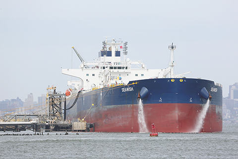 國際油價四月二十九日大幅上漲 2026-05-01 03:30:00 ◎ 國際油價四月二十九日大幅上漲。截至當天收盤,紐約商品交易所六月交貨的輕質原油期貨價格上漲六點九五美元,收於每桶一百零六點八八美元,漲幅為百分之六點九五;六月交貨的倫敦布倫特原油期貨價格上漲六點七七美元,收於每桶一百一十八點零三美元,漲幅為百分之六點零八。圖為二十九日,一艘原油油輪在美國紐約和新澤西港作業。(新華社記者 張鳳國 攝)